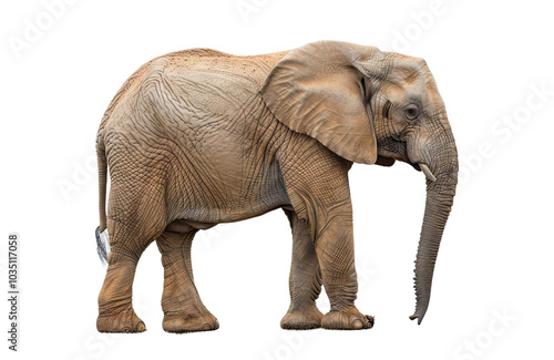 Fototapeta premium African elephant standing, isolated on white background