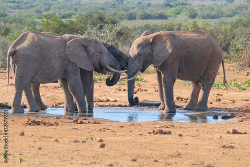 © fotorudi_101, Fototapeta premium African Elephants drinking a water