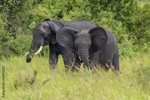 Naklejka premium African elephants (Loxodonta africana), Queen Elizabeth National Park, Uganda, Africa