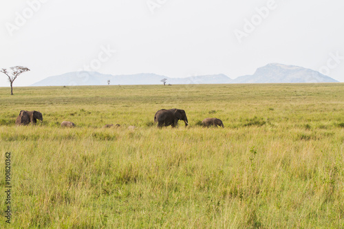 Fototapeta premium African elephants, of the genus Loxodonta in Serengeti National Park, Tanzania