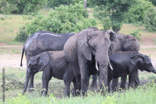 Fototapeta premium African Elephants playing by the Chobe River in Botswana