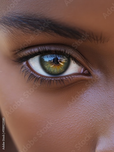 Obraz premium African girl eyes staring camera. Macro close-up Mixed race young woman eye,...