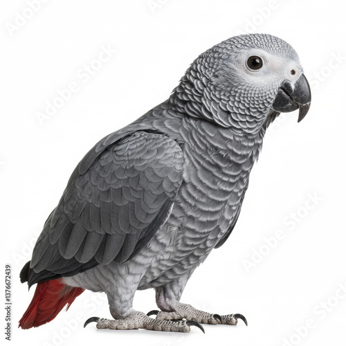 © OlehStock, Fototapeta premium African Grey Parrot on a white background