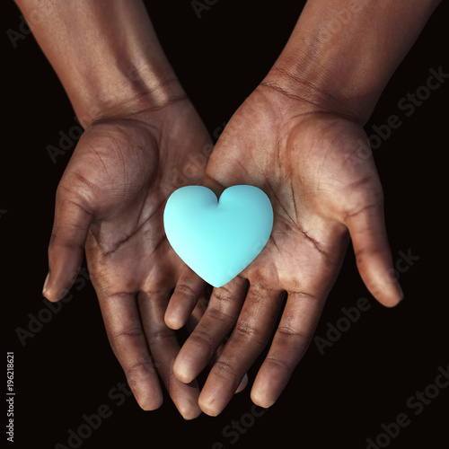 © Giovanni Cancemi, Fototapeta premium African hands holding a blue heart