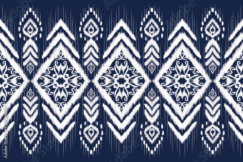 © digital Nomader, Fototapeta premium African Ikat paisley seamless pattern.geometric ethnic oriental pattern traditional on blue background.Aztec style abstract vector illustration.