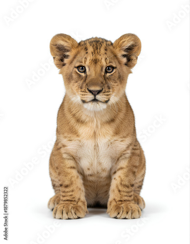 © Silent Atlas, Obraz premium African Lion Cub Portrait Isolated on White