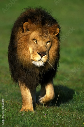 Obraz premium African Lion, panthera leo, Male walking on Grass