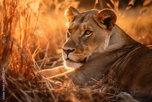 Naklejka premium African Lioness Savanna's Fearless Hunter