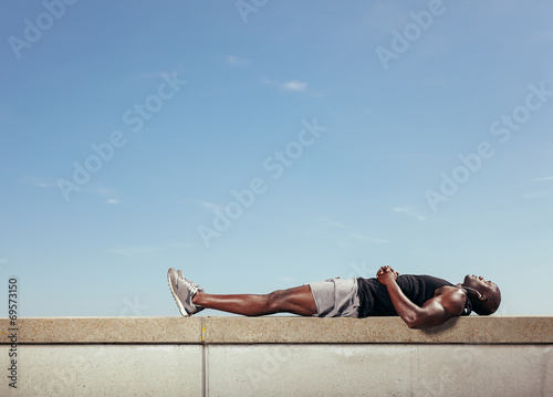 © Jacob Lund, Fototapeta premium African man relaxing after his workout
