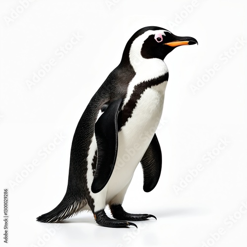 © Vadym, Obraz premium African penguin standing on transparent backdrop. Black-and-white aquatic bird with tuxedo-like plumage. Cute, small, flightless swimmer ideal for educational materials, wildlife presentations,
