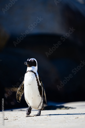 Naklejka premium African penguin walking on sandy beach