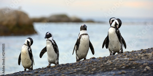 Obraz premium African penguins on the stony coast. African penguin ( Spheniscus demersus)...