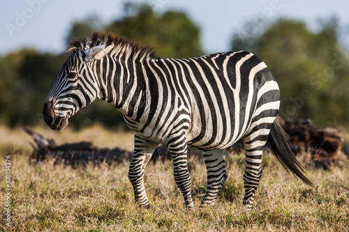 © sichkarenko_com, Fototapeta premium African plains zebra on the dry brown savannah grasslands browsing and grazing.