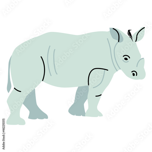 Naklejka premium African rhino illustration Rhinoceros with a sitting bird