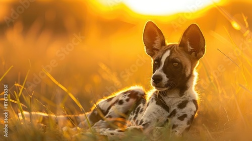 © amankris99, Fototapeta premium African wild dog basking in the golden sunset light.