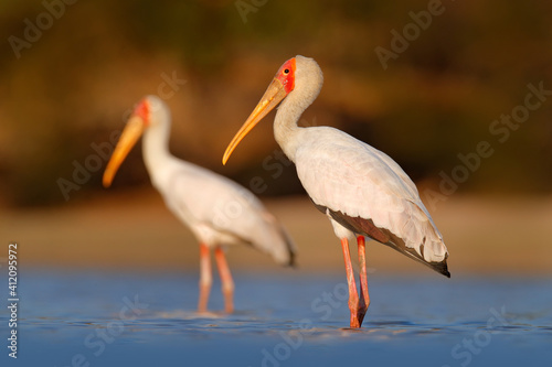 Fototapeta premium Afrika Stork in water. Yellow-billed Stork, Mycteria ibis, sitting in the...