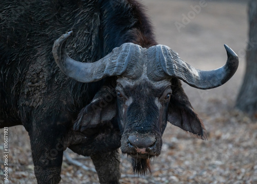 Naklejka premium Afrikanische Tiere Kaffernbüffel oder auch Afrikanischer Büffel Steppenbüffel...