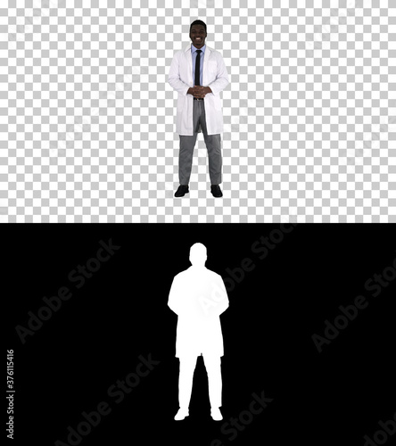 Fototapeta premium Afro-American Doctor Talking To Camera, Alpha Channel