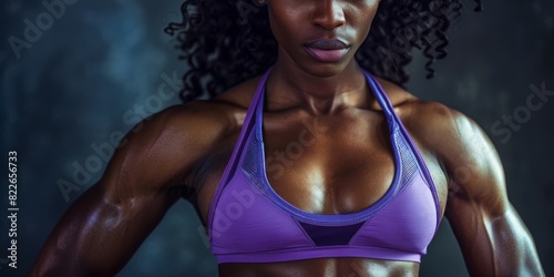 Obraz premium Afro American fitness model torso in purple top with well defined abdominal...