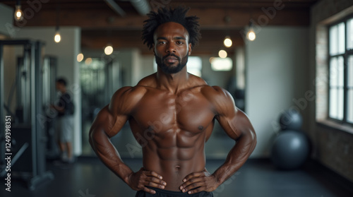 © Konstantin, Fototapeta premium Afro american male bodybuilder in front of gym