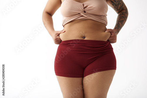 © Yakobchuk Olena, Fototapeta premium Afro American plus size female posing for camera