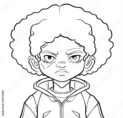 © theartcreator, Obraz premium Afro Girl Coloring Page Vector