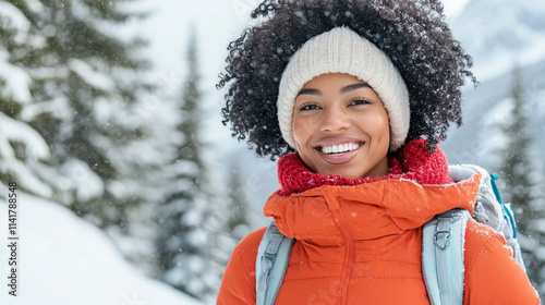 © Ari, Obraz premium Afro woman snowshoeing together in winter at Banff National Park Canada