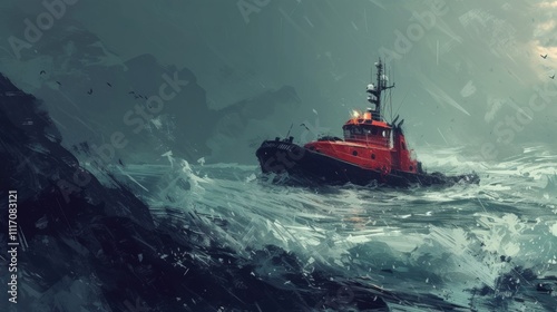 © Justlight, Naklejka premium After successfully maneuvering through rocky waters the captain personally radios in their status to coastal authorities reporting their safe arrival to their intended destination.