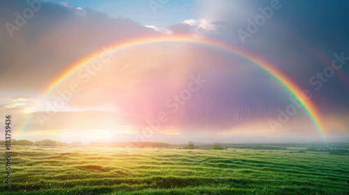 Naklejka premium After the rain comes sunshine and a beautiful rainbow.
