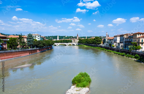© travelview, Fototapeta premium afternoon light over River Adige in Verona