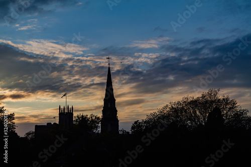 Obraz premium Afternoon shadow view of the tower of The Parish Church of St Cuthbert