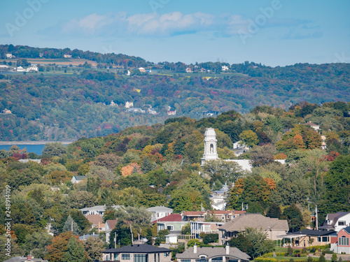 Naklejka premium Afternoon sunny view of Levis city, church with fall color