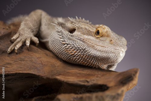 © Sebastian Duda, Naklejka premium Agama bearded, pet on black background, reptile