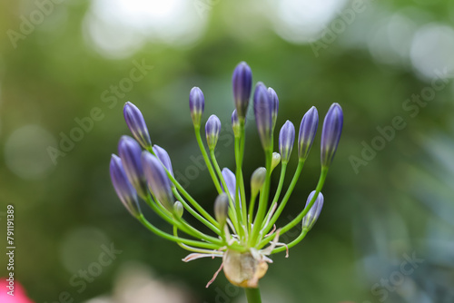 Fototapeta premium Agapanthus Africanus Albus, purple lily flowers, close up. African lily or...