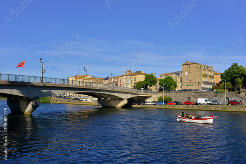 © didier salou, Naklejka premium Agde (34300) en barque sur l'Hérault, département de l'Hérault en région Occitanie, France