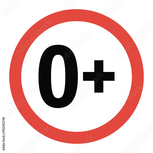 Fototapeta premium 0+ age rating sign, zero plus restriction circular red symbol, vector...
