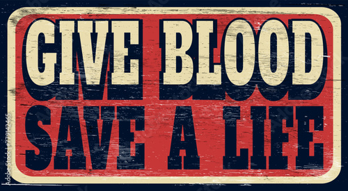 Fototapeta premium Aged and worn give blood save a life sign on wood