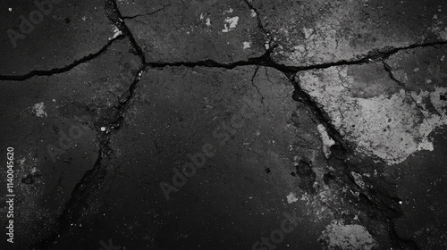 Obraz premium Aged asphalt surface with cracks and textures captured from above, showcasing...