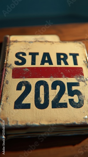 © Taman Siswo, Fototapeta premium Aged Book Marks Start Of Year Two Thousand Twenty Five