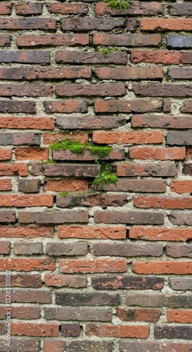 Fototapeta premium Aged Brick Wall with Mossy Growth