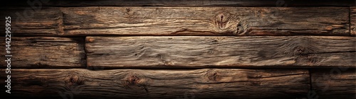 © Антон Сальников, Naklejka premium Aged brown rustic dark wood grain texture forms a wooden background panorama for a long banner
