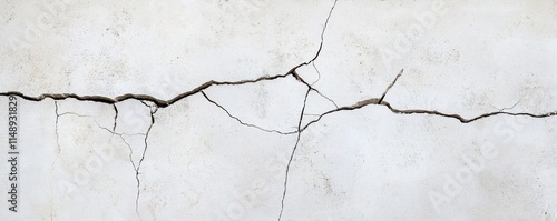 © Vadym, Obraz premium Aged concrete wall exhibits extensive cracking. Visible fractures, damage show deterioration. Light hits surface unevenly. Patterned fissures suggest structural weakness. Texture shows material wear.