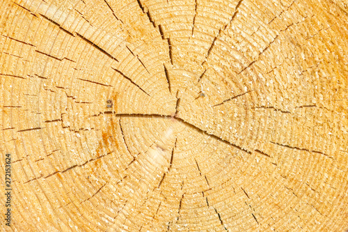 Fototapeta premium Aged cracked wooden tree section with rings and texture