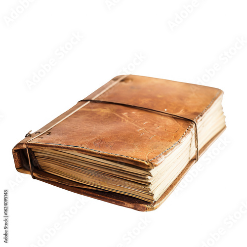 © Takhossus, Obraz premium Aged leather-bound book, slightly angled