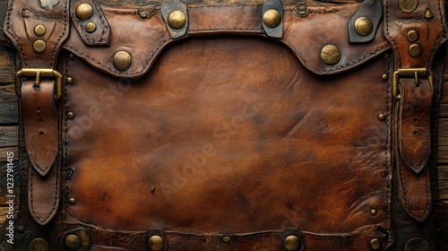 Fototapeta premium Aged Leather Texture with Metal Accents: Rustic Brown Background