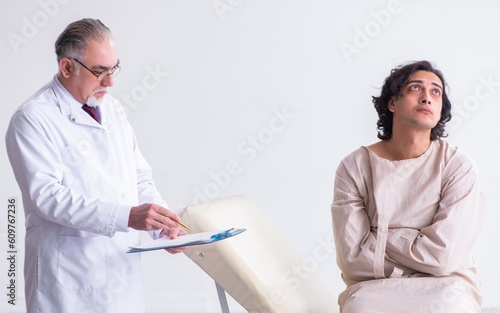 Fototapeta premium Aged male doctor psychiatrist examining young patient