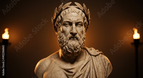 Fototapeta premium Aged Marble Bust of Plato Adorned with Laurel Wreath