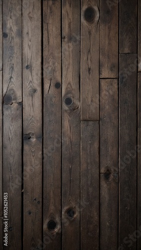 Naklejka premium Aged rustic barn floor with dark wooden planks knots grain and small gaps