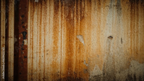 Obraz premium Aged rusty fence with sediment and dripping textures