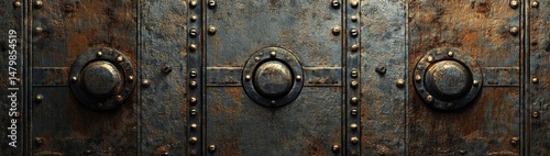 © photopixelstudio, Fototapeta premium Aged, Rusty Metal Panel with Ornate Hardware